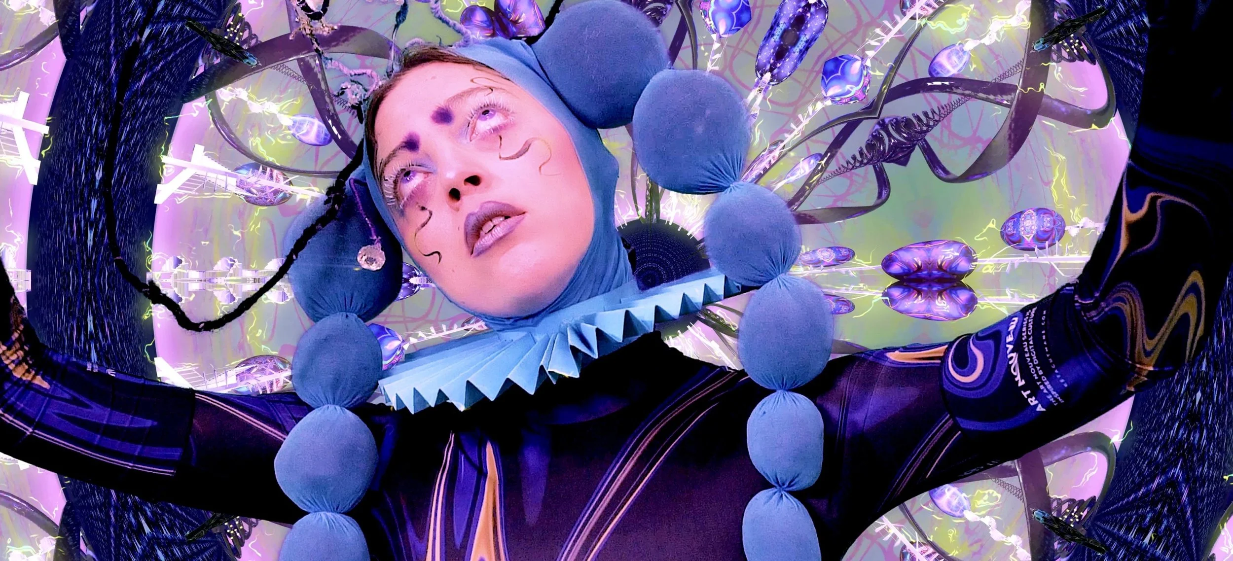 Elizabete Balčus is a Latvian musician and performance artist who creates neo-psychedelic dream pop from surprising, collaged, genre juxtapositions that is simultaneously melodic and experimental. She works with a strong visual aesthetic that draws upon modern surrealism, contemporary fashion and geometric imagery. Elizabete attended Latvian Academy of Music in order to study classical and jazz flute, plus opera vocal in Rome’s Santa Cecilia Academy. Anything is permitted in her musical cosmos: looping flute and voice, clicking electro pop beats and playing vegetables as a synthesizer, leaving the listener in a blissed out trance like state, somewhere between the waking and sleeping. Live performances engage the audience with a psychedelic and theatrical situation that is as befuddling as it is mesmerizing.