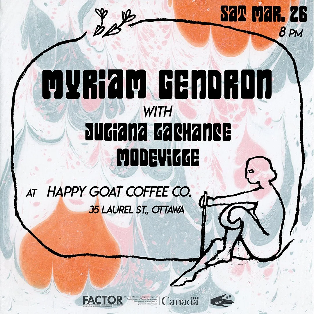 Myriam Gendron was born in Ottawa in 1988 and she grew up between Gatineau (Quebec), Washington D.C. and Paris. She settled in Montreal at the age of sixteen, where she currently makes her living as a book dealer.