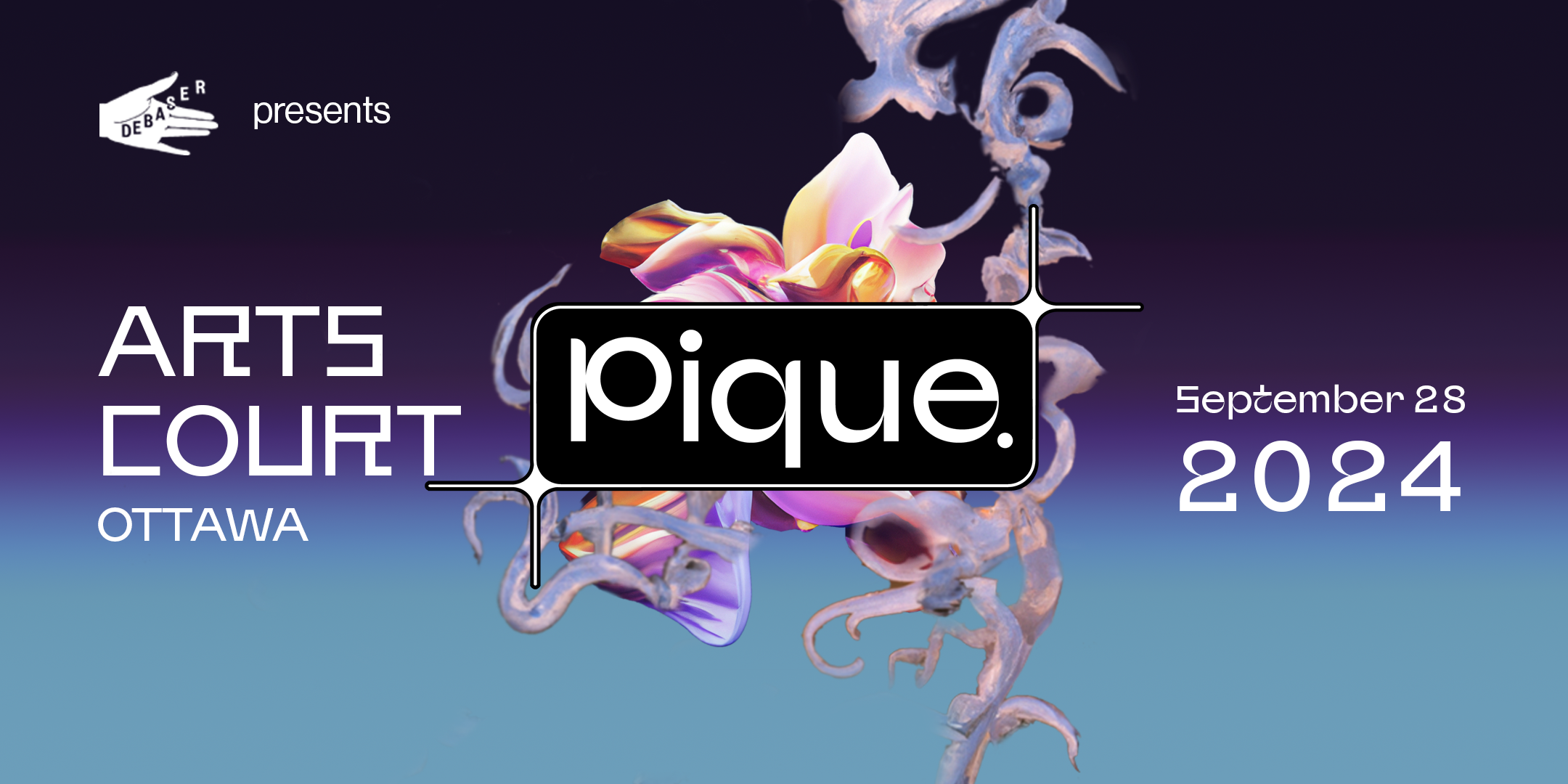Pique is presented in partnership with the Arts Court, SAW, Ottawa International Animation Festival, Indigenous Curatorial Collective, Artengine, DAIMON, Radio Hull, Ottawa Fringe, Digital Arts Resource Centre, Ottawa Art Gallery, Ottawa Dance Directive, Venus Fest, and Produced by Youth, with support from Dominion City Brewing Company, Kilam Media, Wall Sound, Planet Coffee, DAVIDsTEA, Postering Ottawa, n.10.as, Apt613, and CKCU FM, and is funded by the Canada Council for the Arts, Canadian Heritage, Ontario Trillium Foundation, the City of Ottawa, and the SOCAN Foundation.